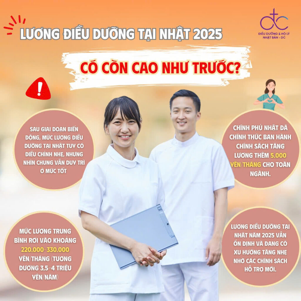 Theo ghi nhận, mặc dù có những điều chỉnh nhỏ sau giai đoạn kinh tế biến động, mức lương điều dưỡng tại Nhật Bản vẫn duy trì ở mức tốt so với nhiều ngành nghề khác. Đặc biệt, với tình trạng dân số già hóa nhanh chóng, nhu cầu nhân lực chăm sóc người cao tuổi vẫn đang rất lớn và liên tục gia tăng.