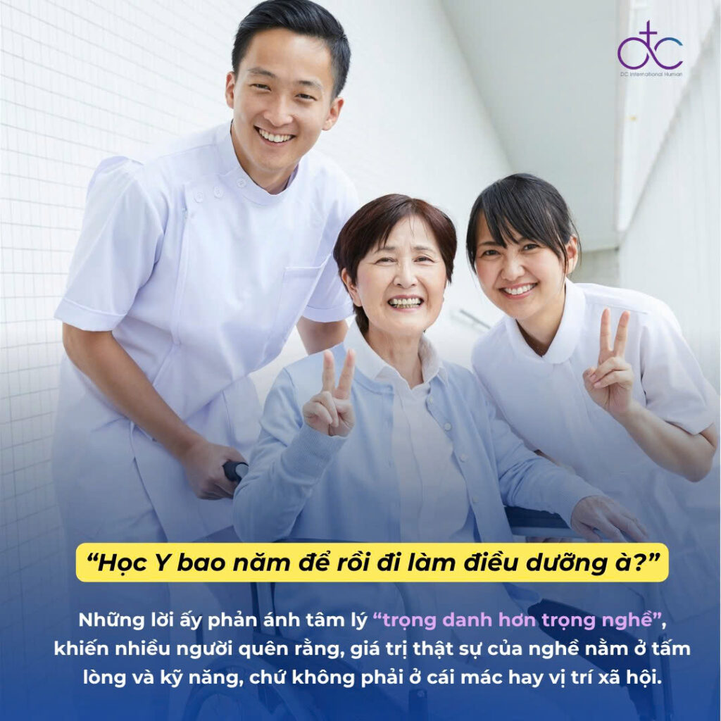 🩺 Ở Việt Nam, đôi khi ta hay nghe người ta nói: “Đi Nhật làm điều dưỡng chẳng khác gì giúp việc cho người già.” hay “Học Y bao năm để rồi đi làm điều dưỡng à?”, đây là những câu nói mang định kiến gắn liền với tâm lý “trọng danh hơn trọng nghề”, khiến nhiều người quên rằng, giá trị thật sự của nghề nằm ở tấm lòng và kỹ năng, chứ không phải ở cái mác hay vị trí xã hội.